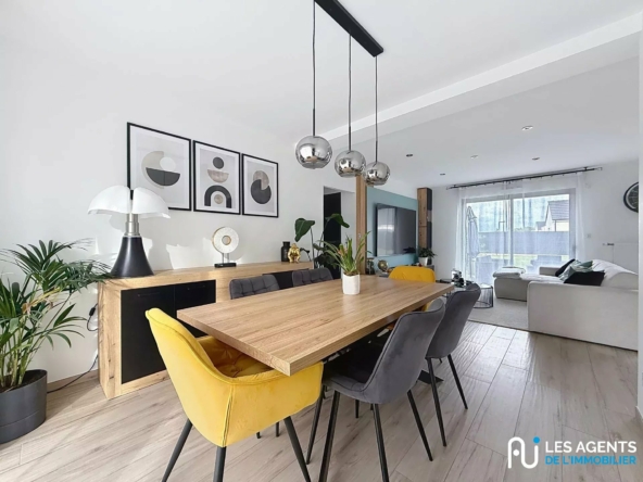 Maison/Villa 6 pièces Les Agents de l’Immobilier vous proposent : Située dans un environnement résidentiel calme et recherché de la commune de Saran, à proximité immédiate du CAP Saran, autoroutes, et du Pôle 45, cette maison récente construite en 2023 offre un cadre de vie idéal pour une famille ou un couple en quête de confort, de modernité et de praticité. Implantée sur une parcelle de 580 m² entièrement close et arborée, la maison propose des prestations de qualité, un agencement fonctionnel, ainsi que des garanties constructeur en cours : garantie décennale et assurance dommages-ouvrage. Dès l’entrée, vous découvrirez une spacieuse pièce de vie de 45 m², baignée de lumière grâce à de grandes ouvertures sur le jardin. Cet espace chaleureux et convivial comprend un salon/séjour ainsi qu’une cuisine ouverte moderne, entièrement aménagée et équipée (électroménager encastré, nombreux rangements, ilot central). À l’arrière du séjour, un espace nuit indépendant permet d’accueillir une chambre, idéale pour des invités, un adolescent, ou pour y aménager un bureau. Une salle d’eau moderne, ainsi qu’un WC séparé complètent cet espace. Une buanderie attenante permet un espace de rangement et de gestion du linge, tandis qu’un garage accessible depuis l’intérieur vient parfaire la praticité de ce rez-de-chaussée. À l’étage : Le palier distribue trois belles chambres, dont une grande suite parentale de 16m² dotée d’un dressing sur mesure. Les deux autres chambres offrent des surfaces confortables allant de 11 à 13 m², idéales pour enfants ou adolescents. Une seconde salle d’eau avec WC vient compléter l’étage. Pour finir, un stationnement privé devant la maison permet d’accueillir plusieurs véhicules. Une visite s’impose rapidement.