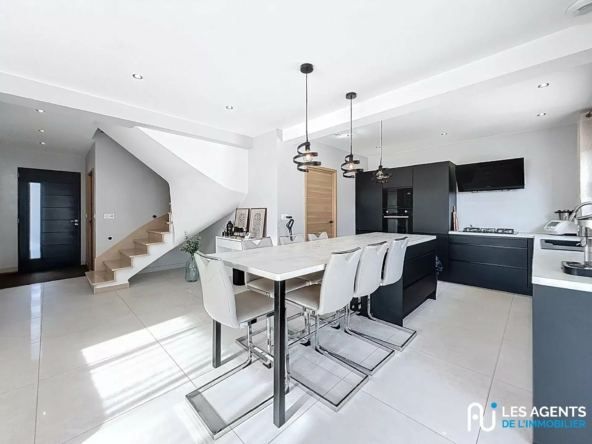 Maison/Villa 6 pièces Maison contemporaine 5 pièces – 116 m² – Semoy (45400) Située dans un environnement résidentiel calme et recherché de Semoy, cette maison récente construite en 2022 séduit par ses prestations modernes, ses volumes optimisés et son extérieur soigné. Mitoyenne uniquement par le garage, elle offre 116 m² habitables sur une parcelle de 345 m², parfaitement aménagée. ✨ Au rez-de-chaussée Vous découvrirez une belle pièce de vie lumineuse de 39 m² avec cuisine ouverte, aménagée et entièrement équipée, idéale pour les moments en famille ou entre amis. Une chambre de 12,73 m² avec espace de rangement, une salle d’eau avec WC, ainsi qu’un accès direct au garage complètent ce niveau, offrant une vraie vie de plain-pied. ️ À l’étage Un palier dessert trois chambres spacieuses de plus de 12 m² chacune, parfaites pour une famille, ainsi qu’une salle de bain avec WC. Extérieurs À l’arrière, vous profiterez d’un jardin sans vis-à-vis, véritable havre de paix, avec : • une piscine d’environ 11 m² équipée d’une pompe à chaleur, • une pergola, • une terrasse en travertin, idéale pour les beaux jours. Prestations & confort • Chaudière à condensation • Chauffage au sol au rez-de-chaussée • Climatisation réversible au rez-de-chaussée • Volets roulants électriques connectés • Caméras de surveillance connectées ️ Sécurité & sérénité La maison bénéficie encore des garanties décennales sur le gros œuvre, la maçonnerie et l’étanchéité. ⸻ Une maison clé en main, moderne et parfaitement entretenue, alliant confort, technologie et qualité de vie. À visiter sans tarder !