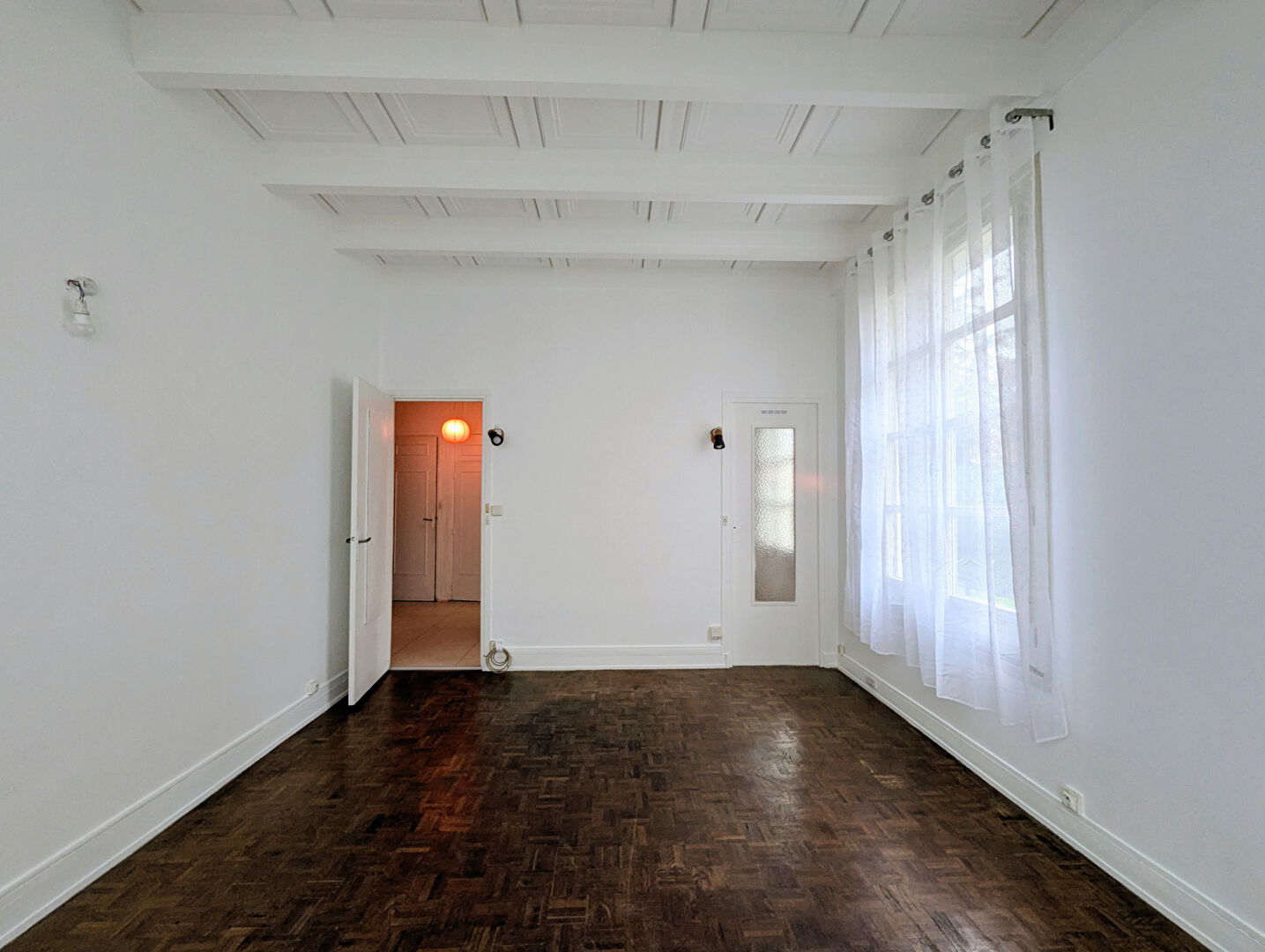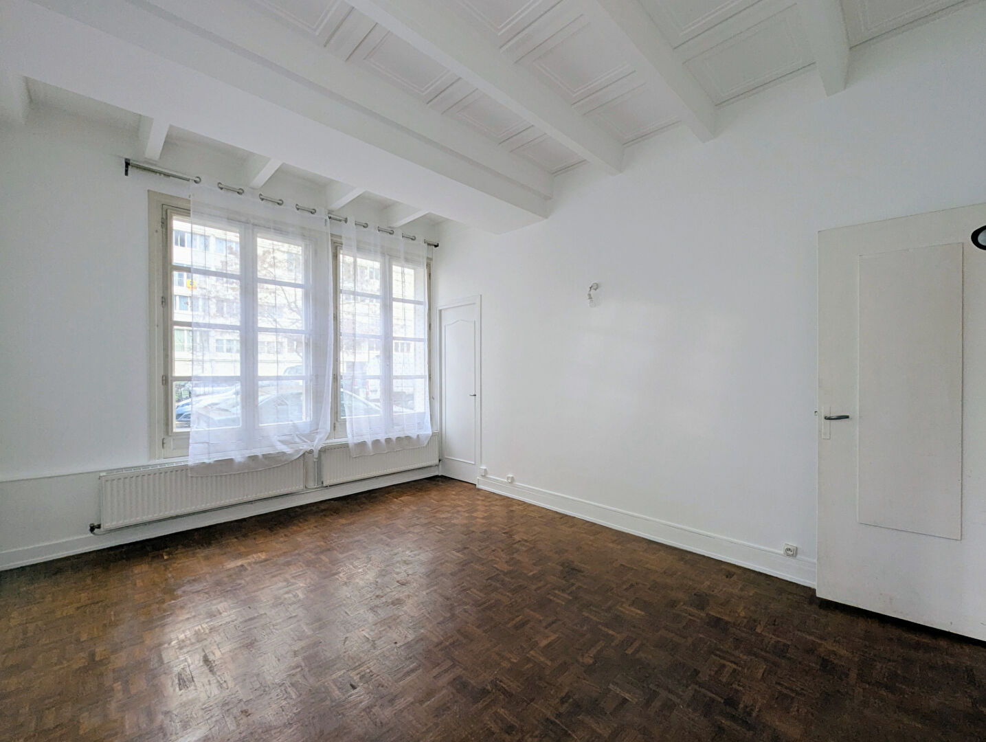 Vous serez immédiatement séduit par la très belle hauteur sous plafond (environ 3 mètres), apportant volume et caractère, ainsi que par le parquet massif en chêne, véritable cachet de l’ancien.