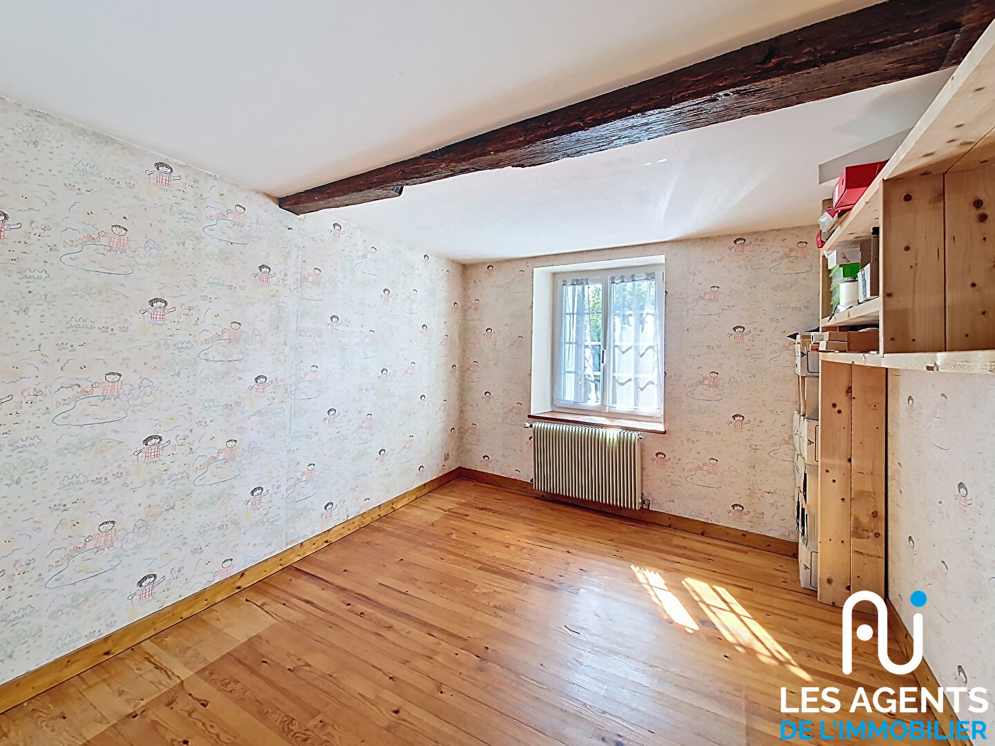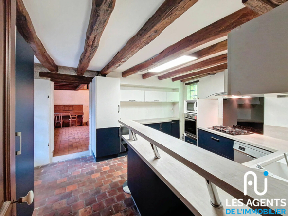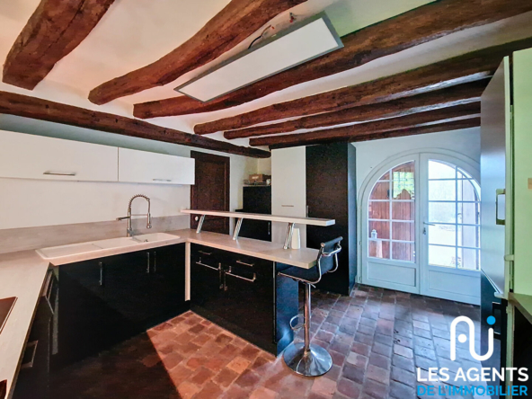 L’entrée mène à une cuisine aménagée et équipée, un cellier et des WC. La pièce de vie, sous hauteur cathédrale avec ses poutres apparentes, est agrémentée d’une cheminée avec insert, idéale pour de beaux moments en famille ou entre amis. A la suite, une pièce pouvant être aménagée en chambre de plain-pied (avec point d’eau) ou en salle de jeux, selon vos envies.