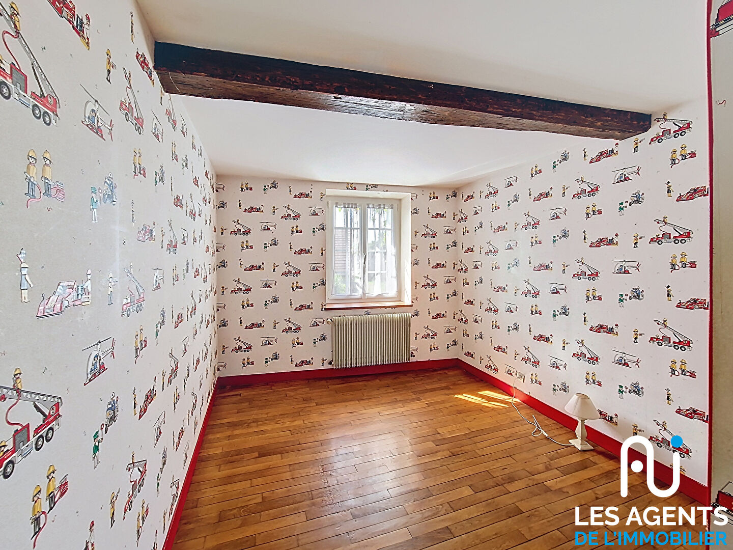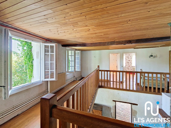 A l’étage, la mezzanine dessert trois chambres, une salle d’eau et des WC.
