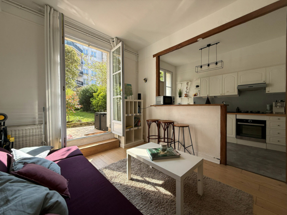 RARE – A quelques pas du métro ligne 4 « Mairie de Montrouge », appartement de 54m² agrémenté d’un jardin de 100m². Il se compose d’une entrée, d’un séjour et sa cuisine ouverte le tout donnant sur le jardin, 2 chambres, une salle de bains avec wc. Cave. Local vélos.