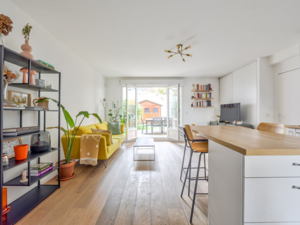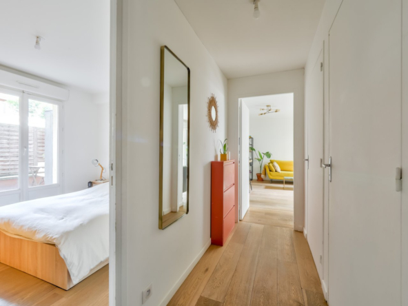 L’entrée vous mène à une première chambre spacieuse avec son dressing, une salle d’eau et des toilettes indépendantes. Vous arrivez ensuite sur une vaste pièce de vie traversante, s’ouvrant d’un coté sur une discrète terrasse et de l’autre sur un jardin privatif arboré de près de 60m² à l’abri des regards. La cuisine ouverte refaite en 2022 tout équipée avec son ilot central apporte à l’ensemble modernité et convivialité. Une seconde chambre doublement exposée se prolongeant sur la terrasse complète cette belle proposition.