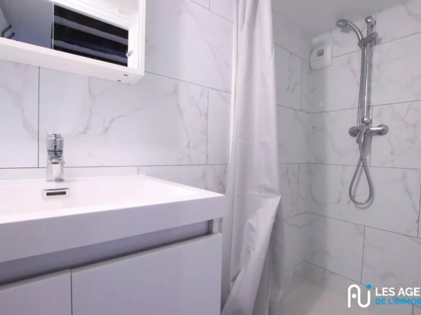 Vous bénéficierez d’un coin cuisine aménagée et équipée sur la pièce de vie, une salle d’eau et un WC séparé.