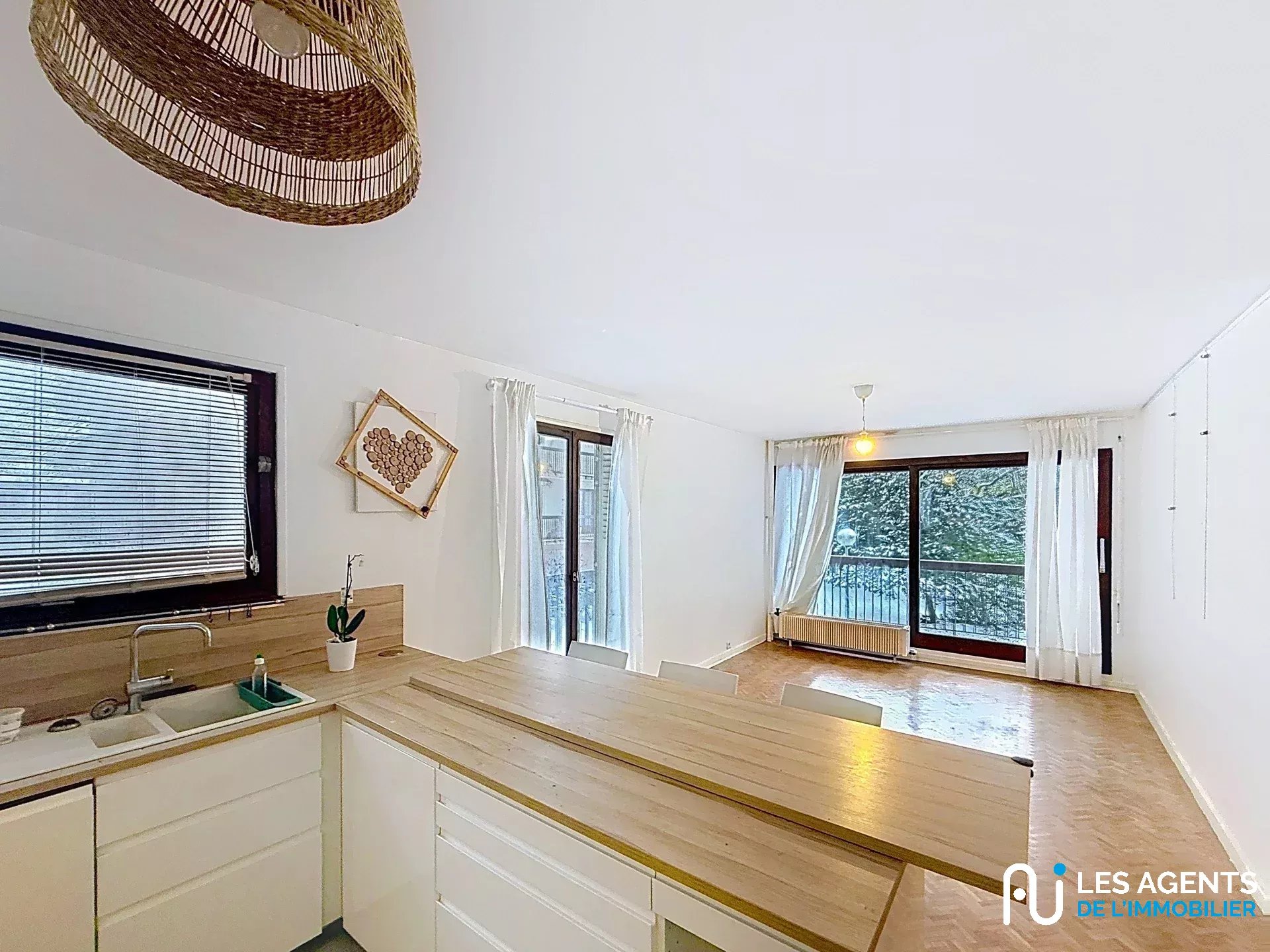 L’entrée s’ouvre sur une pièce de vie spacieuse et baignée de lumière comprenant un séjour avec cuisine aménagée et équipée. Un couloir sépare l’espace nuit qui se compose de deux chambres, d’une salle de bain et d’un WC indépendant.