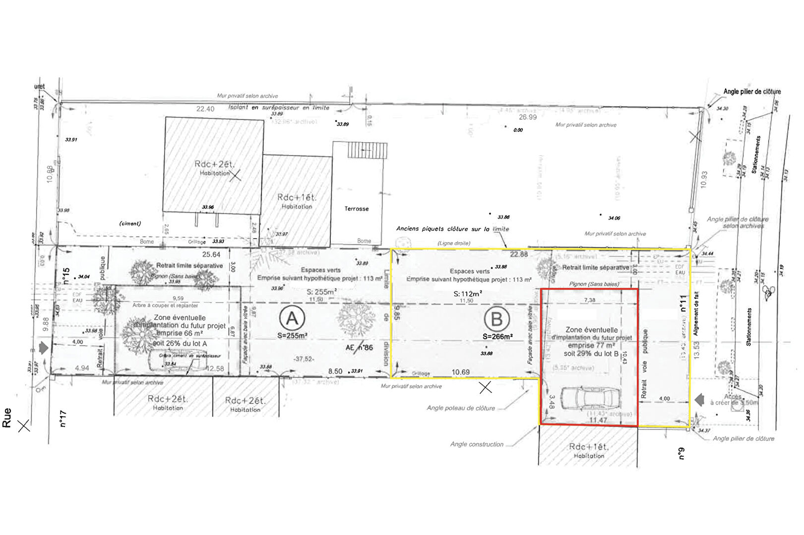 Possibilité de construction d’une maison avec une emprise au sol d’environ 66 m², sur deux niveaux plus combles.