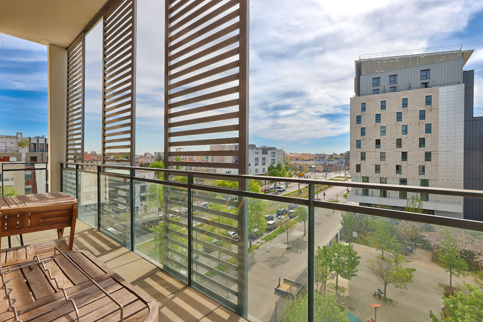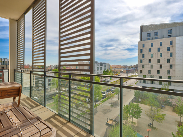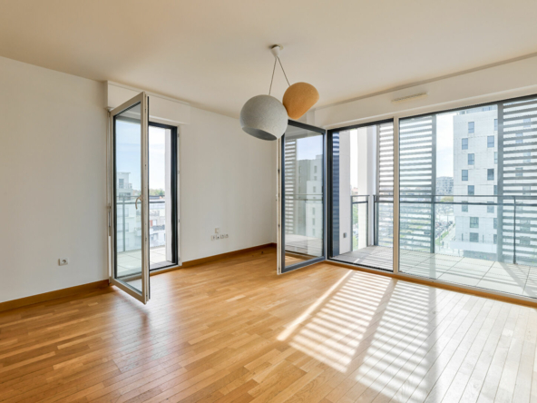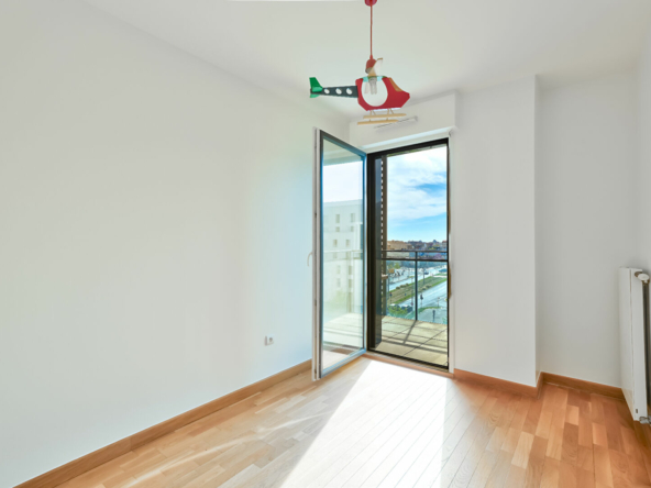 Au pied du Tramway – 15 min de la défense. Appartement familial de 85m² habitable situé au 5émé étage comprenant : Entrée, séjour plus cuisine us équipée (40m²) donnant sur 1 balcon (8.82m²) et 1 terrasse (11,57m²) orientation plein SUD donnant sur un parc, 3 chambres, salle de bains, WC séparé. Place de parking et cave en sous-sol. Immeuble récent, bonne isolation thermique et phonique. Parfait pour une famille avec enfants. A VISITER RAPIDEMENT.