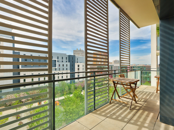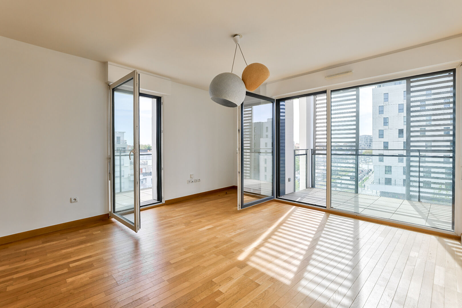 Au pied du Tramway – 15 min de la défense. Appartement familial de 85m² habitable situé au 5émé étage comprenant : Entrée, séjour plus cuisine us équipée (40m²) donnant sur 1 balcon (8.82m²) et 1 terrasse (11,57m²) orientation plein SUD donnant sur un parc, 3 chambres, salle de bains, WC séparé. Place de parking et cave en sous-sol. Immeuble récent, bonne isolation thermique et phonique. Parfait pour une famille avec enfants. A VISITER RAPIDEMENT.