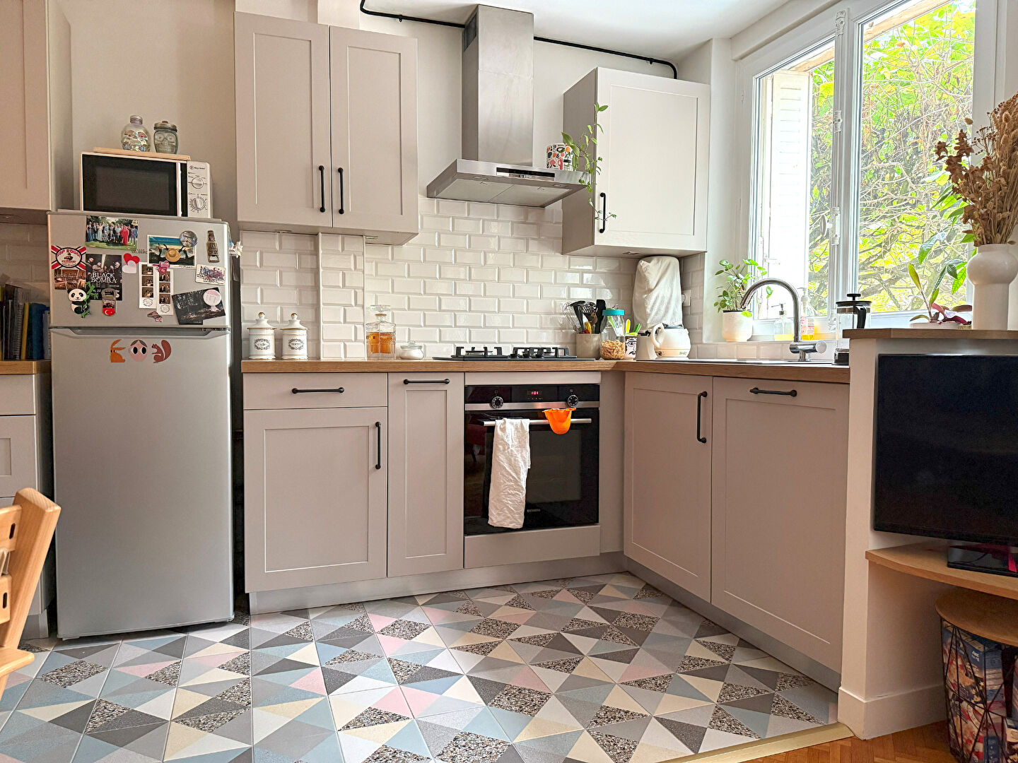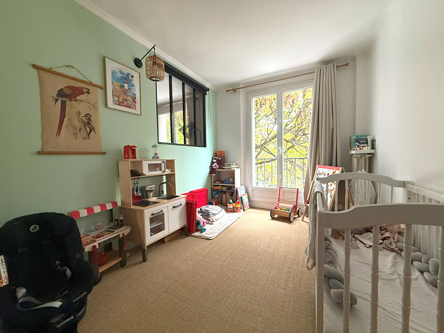 Proche du métro, dans un immeuble des années 50, appartement de 3 pièces donnant entièrement sur un square. Il se compose d’une entrée, d’un séjour, d’une cuisine ouverte équipée et aménagée avec coin repas, de deux chambres, d’une salle d’eau et wc séparés. Cave et Parking.
